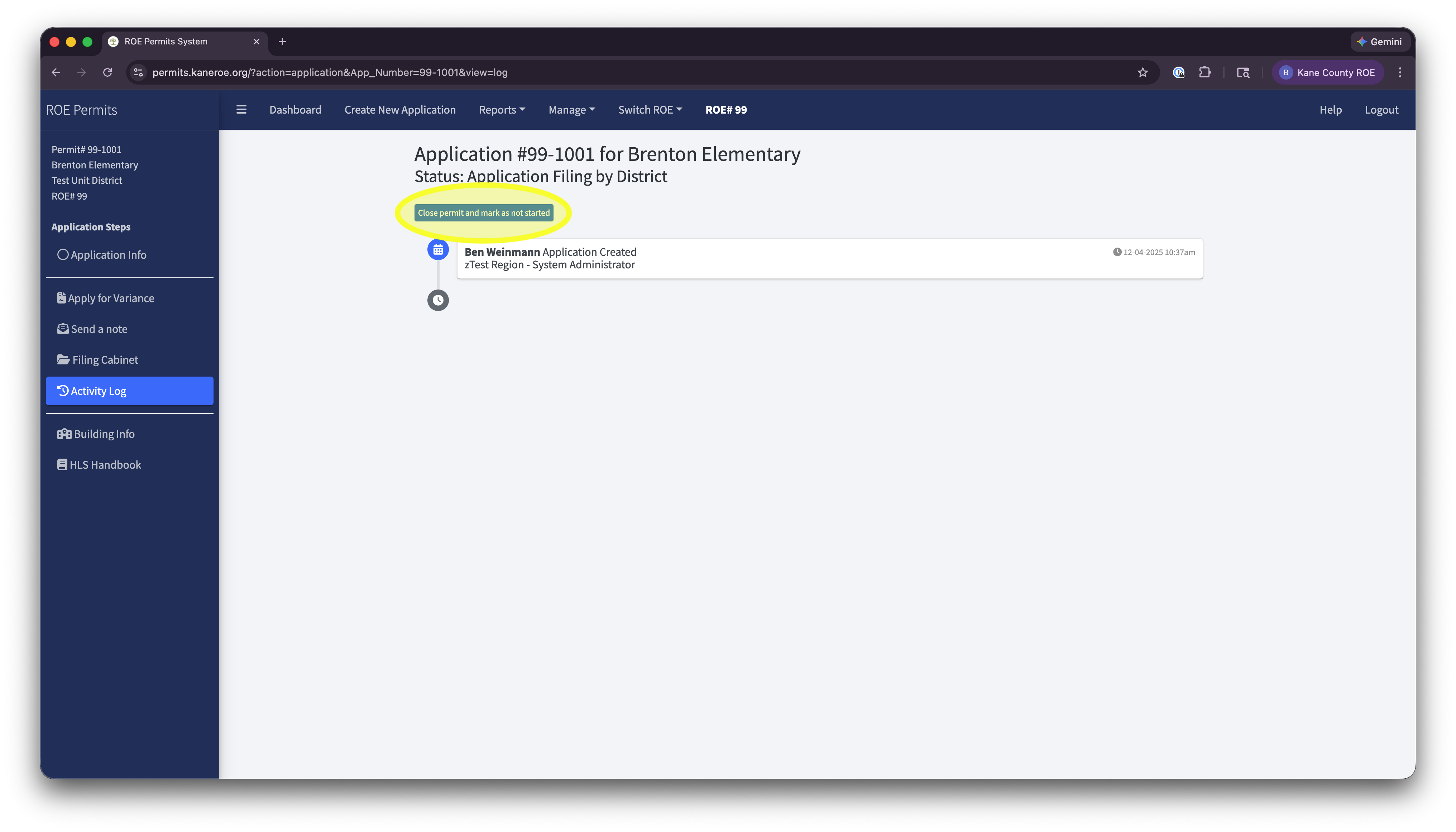 Once in the Activity Log, click on the "Close permit and mark as not started" button. This will close the permit and remove it from your active permit dashboard!